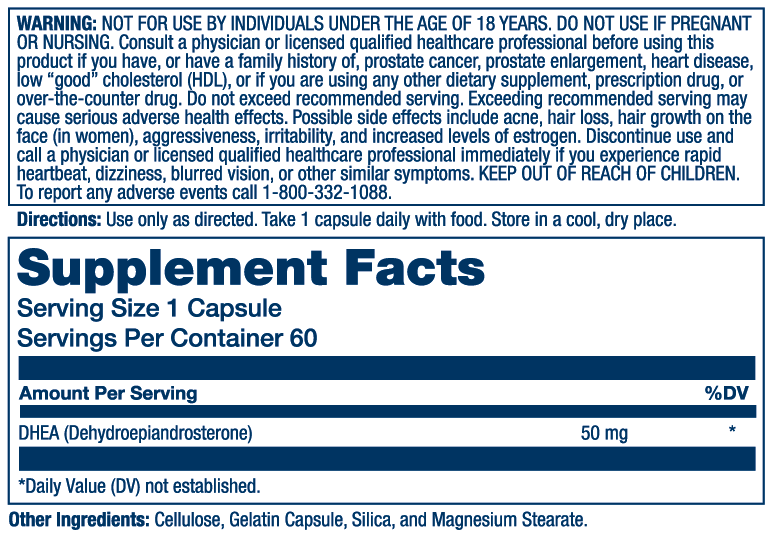 - Delivers 50 mg dehydroepiandrosterone (DHEA) to support hormones and healthy aging*