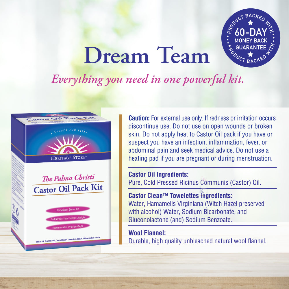 Heritage Store Castor Oil Pack | Natural & Unbleached, Sewn in USA | Cold Pressed, No Hexane | Oil, Wool & Towelettes | 16 oz | 60 Day Money Back Guarantee