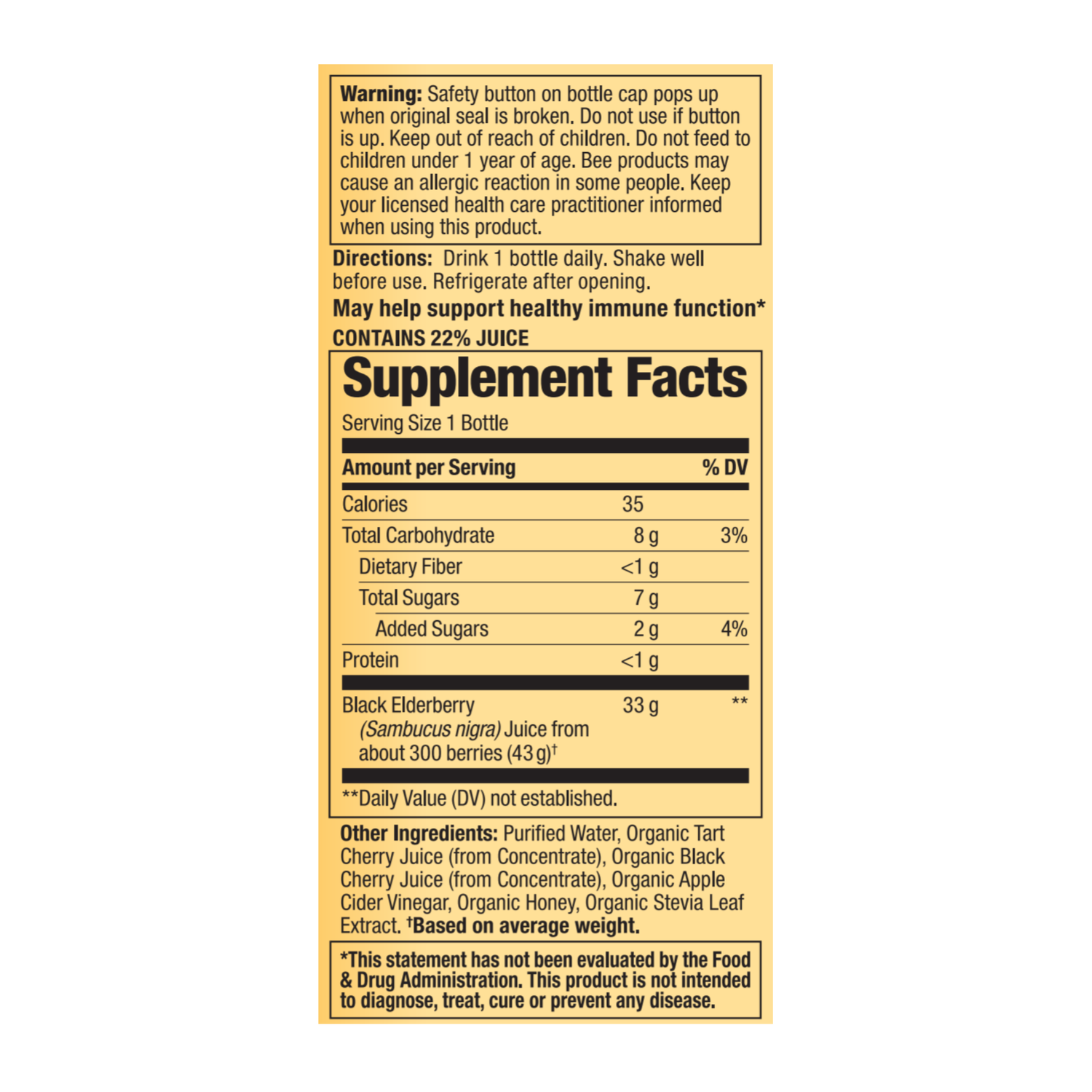Nourishment with every sip: This thoughtfully crafted blend of tangy elderberries and raw honey is rich in flavor and rooted in tradition.