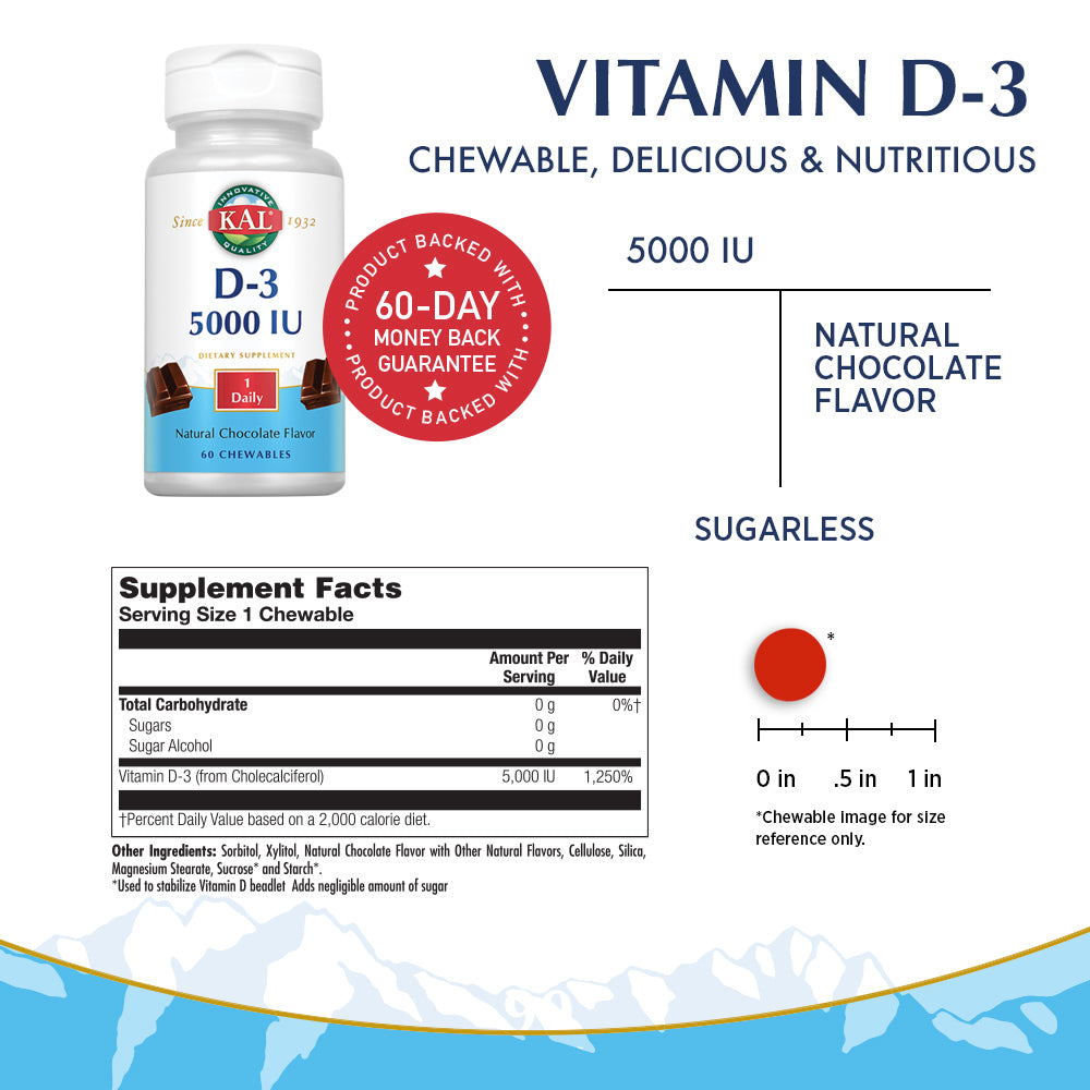 - Conveniently Strong: 5000 IU or 1,250% RDI of Vitamin D-3 per chewable