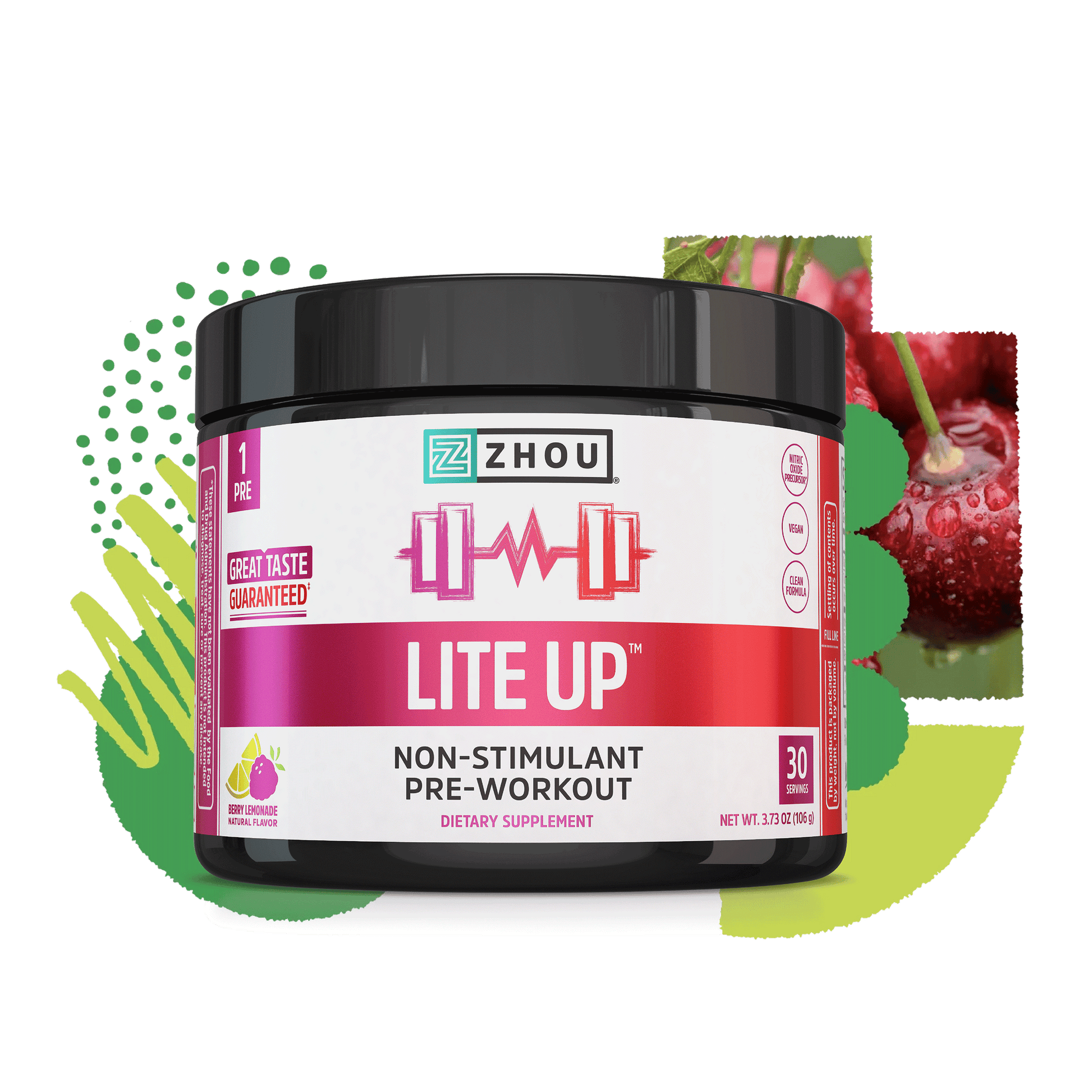 No caffeine? No problem. You can still get in on the smooth energy and powerful workouts. Lite Up offers all the benefits of a pre-workout without the caffeine. This non-stimulant pre-workout delivers a powerful list of ingredients. Citrulline malate and Nitrosigine® deliver a nitric oxide boost, while malic acid and tart cherry promote energy, strength and stamina. We didn’t want anyone to miss out on a good workout, so we formulated Lite Up without caffeine. Say goodbye to jitters and hello to new PRs.