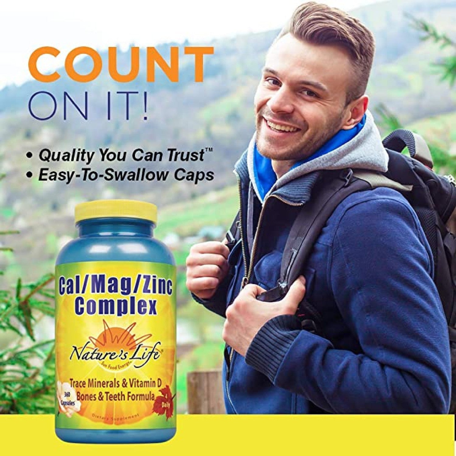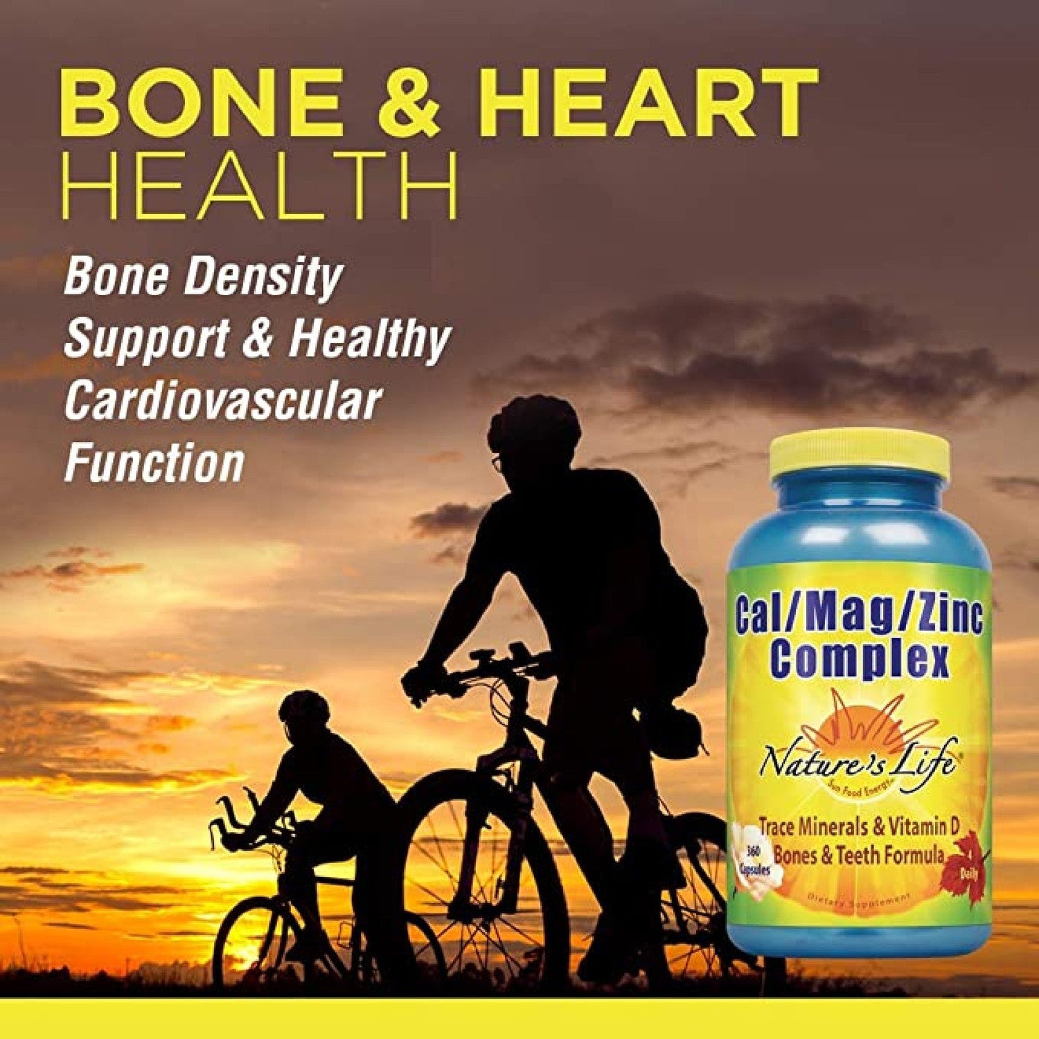 Nature's Life Cal Mag Zinc Complex 100% Daily Value of Calcium, Magnesium, Zinc & Vit D3 for Bone & Heart Health Support 360 Vegetarian Capsules