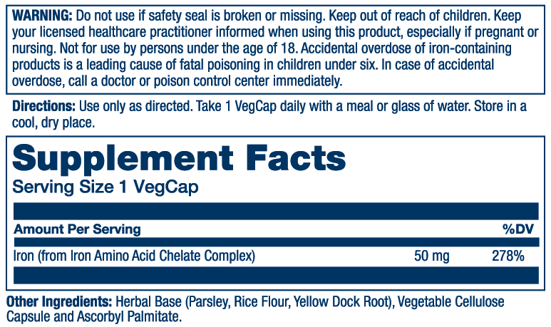 - Provides 50 mg of iron to support the body’s natural production of red blood cells*