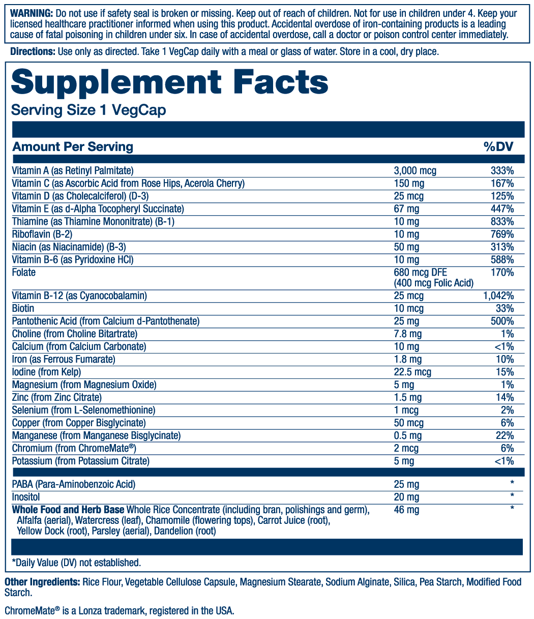- Includes potent doses of vitamin B1 to support cellular energy metabolism and vitamin A for immune function support*