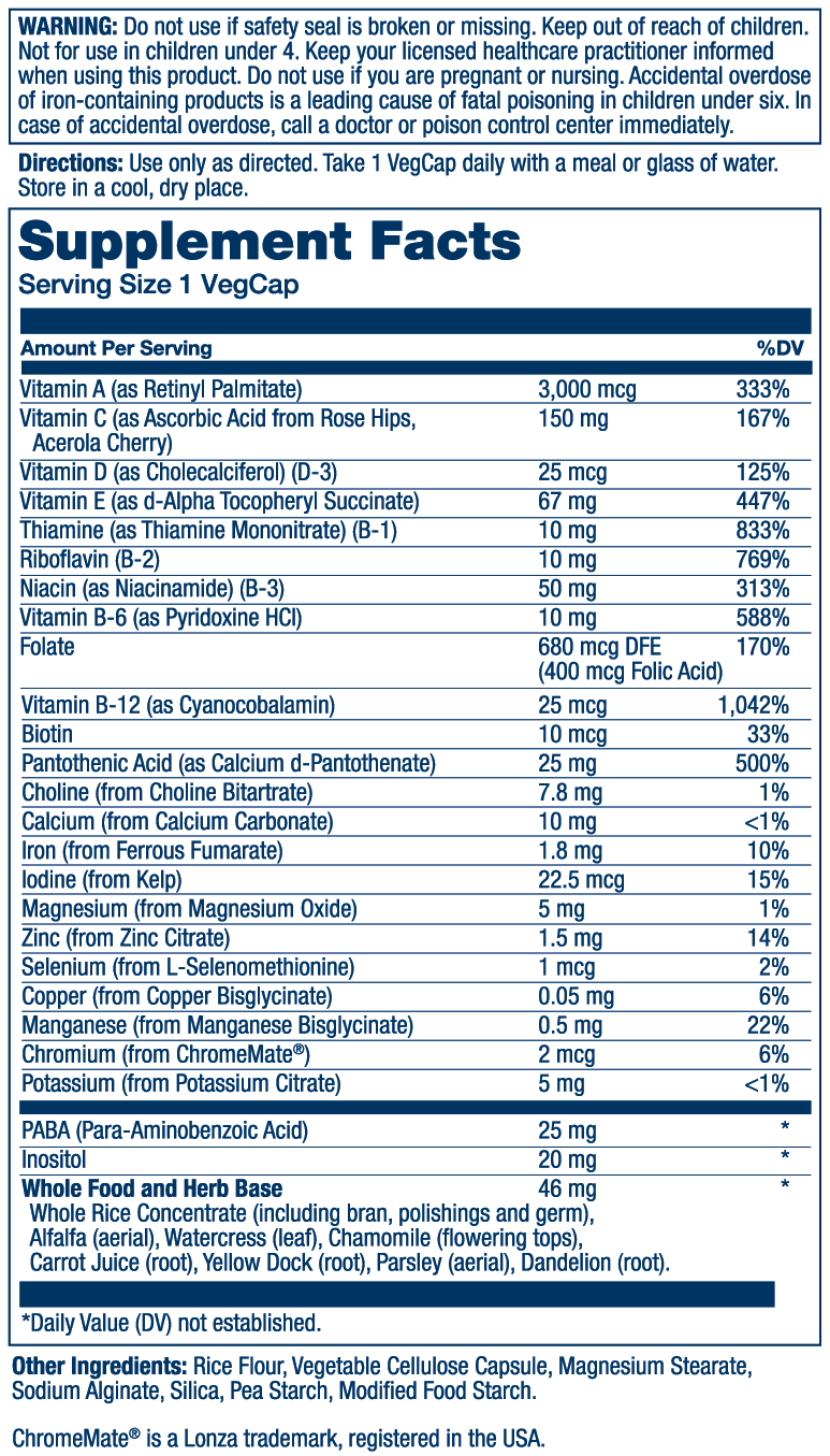 Supercharge your wellness: Solaray High Energy Multivitamin is formulated to maximize your health with vitamin B1 to support cellular energy metabolism, vitamin A for immune function support, and a whole food and herb base to help power up your day.*