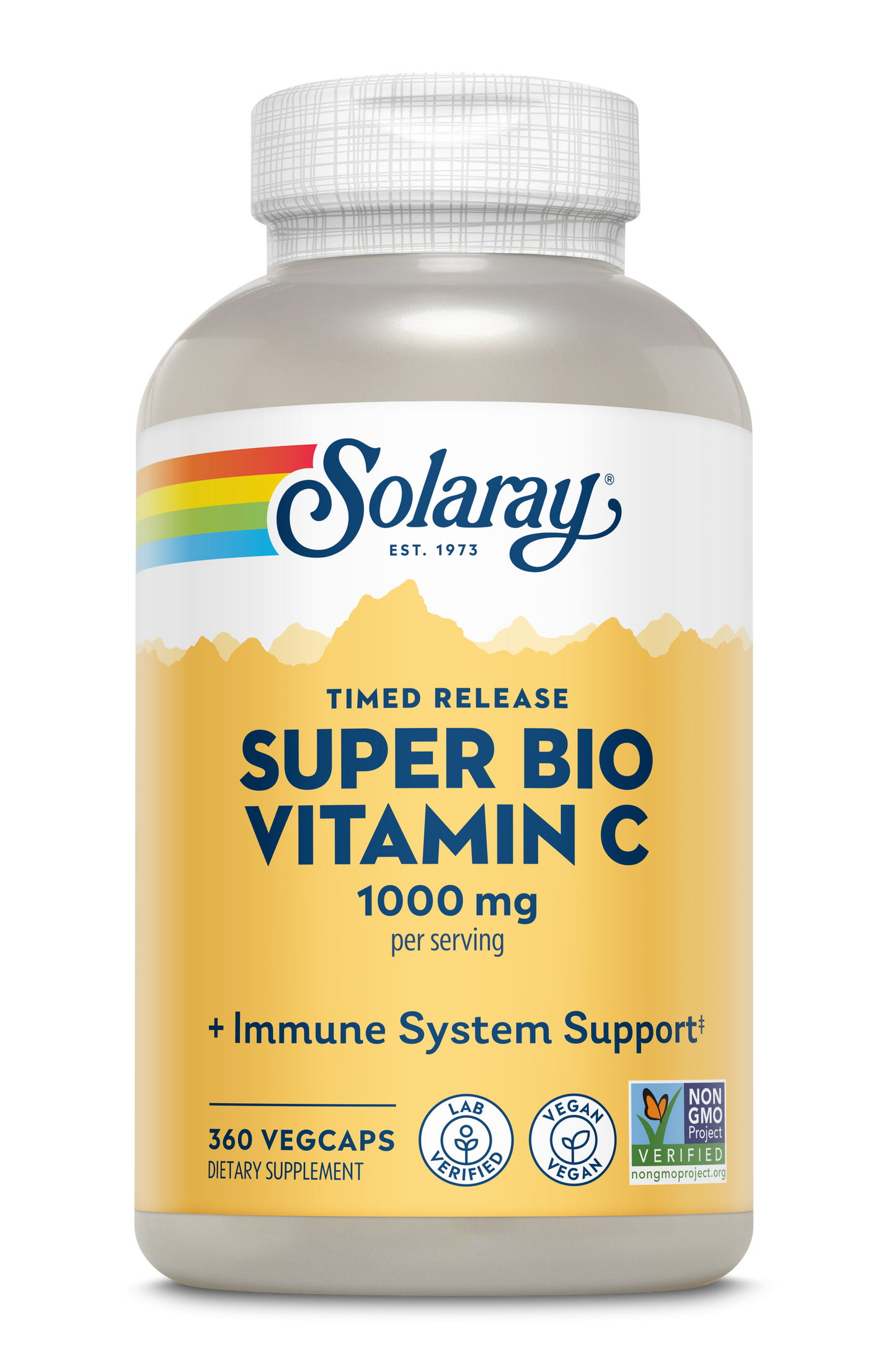 Take charge of your wellness with Solaray Super Bio Vitamin C 1000 mg, timed-release, vegan and designed to help you shine.